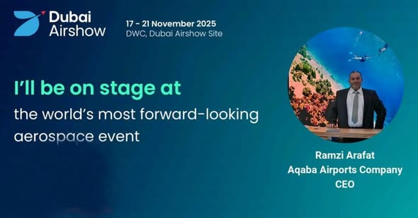 Aqaba Airports Company / King Hussein International Airport concluded its participation in the Dubai Airshow 2025, held under the slogan “The Future Begins Here,” and hosted by Dubai World Central Airport. The company’s CEO, Ramzi Arafat, took part in the event alongside a distinguished group of the world’s leading aviation industry figures.
